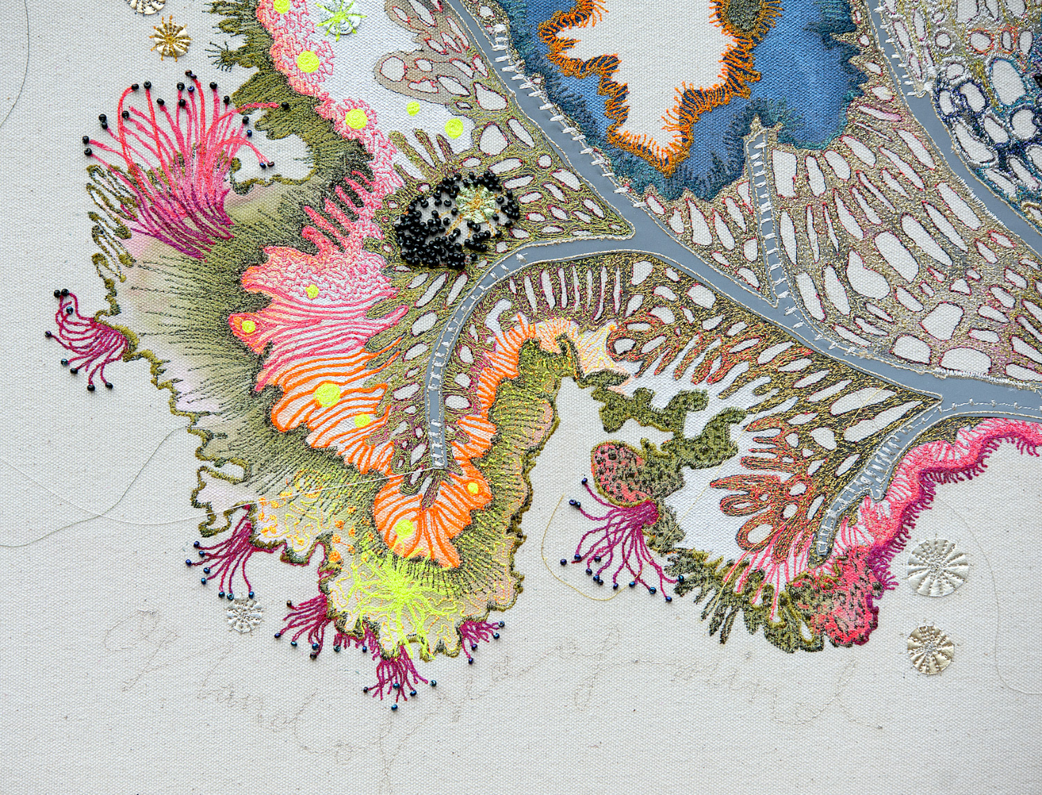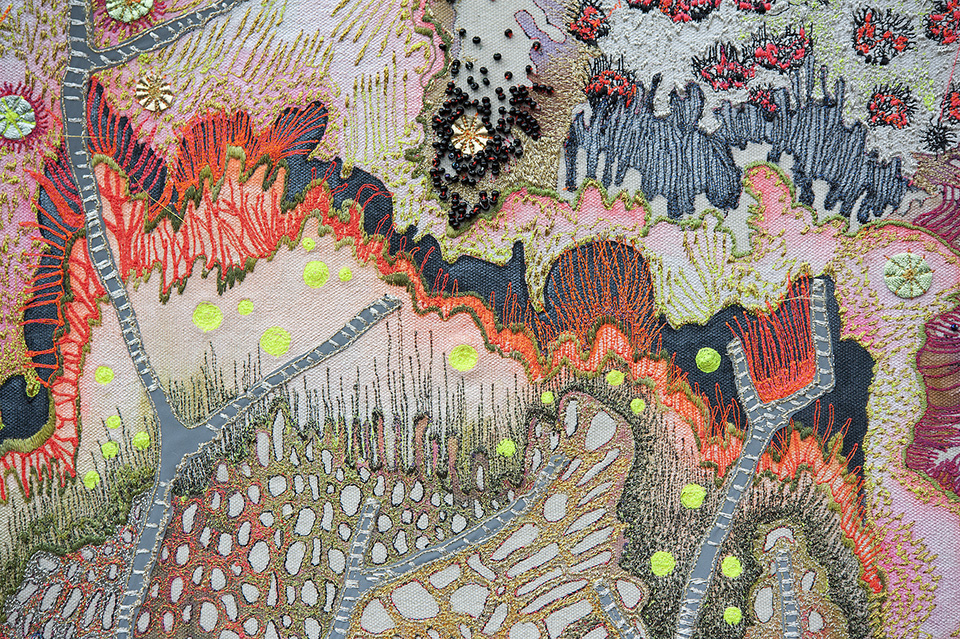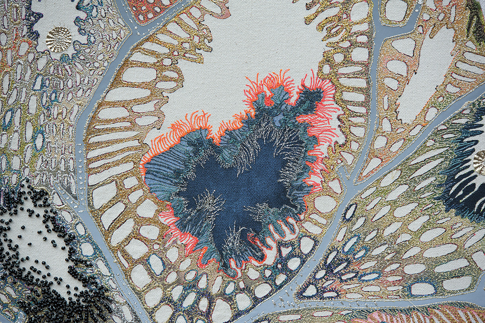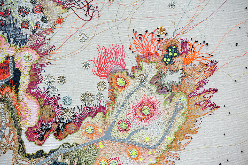 This was the first of three large embroidered coral artworks and was commissioned by a collector of my work. I was given 'carte blanche' to fill a particular wall in his Liverpool home.