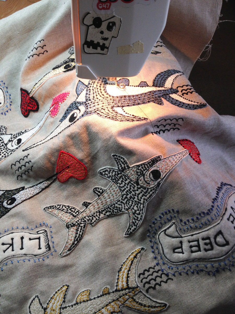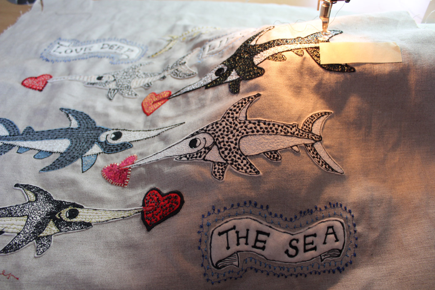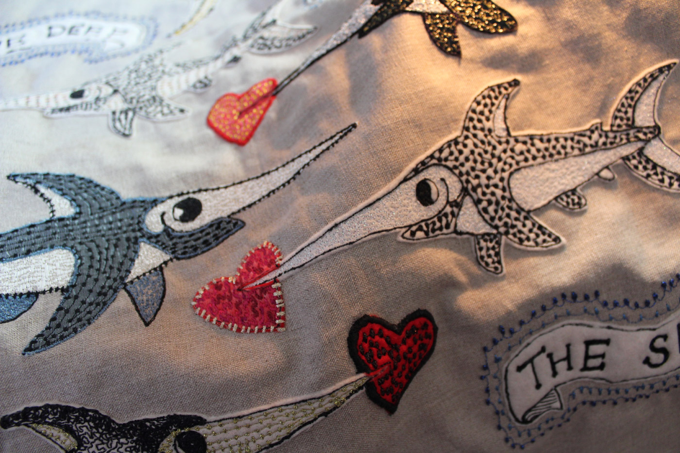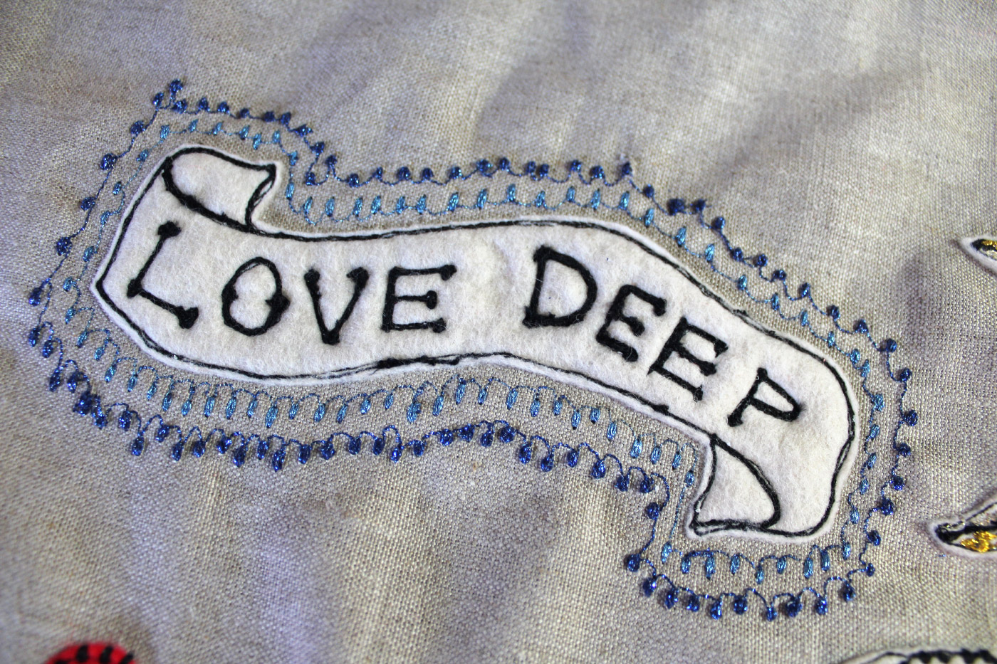 'Love Deep' was an exploration into further tattoo based works for the Ruthin Craft Centre exhibition having already promised the Lighthouse of Love Quilt from Liberty. This showcase of contemporary embroidered artworks by a group of prominent embroidery artists from around the UK was a fun and witty exhibition.